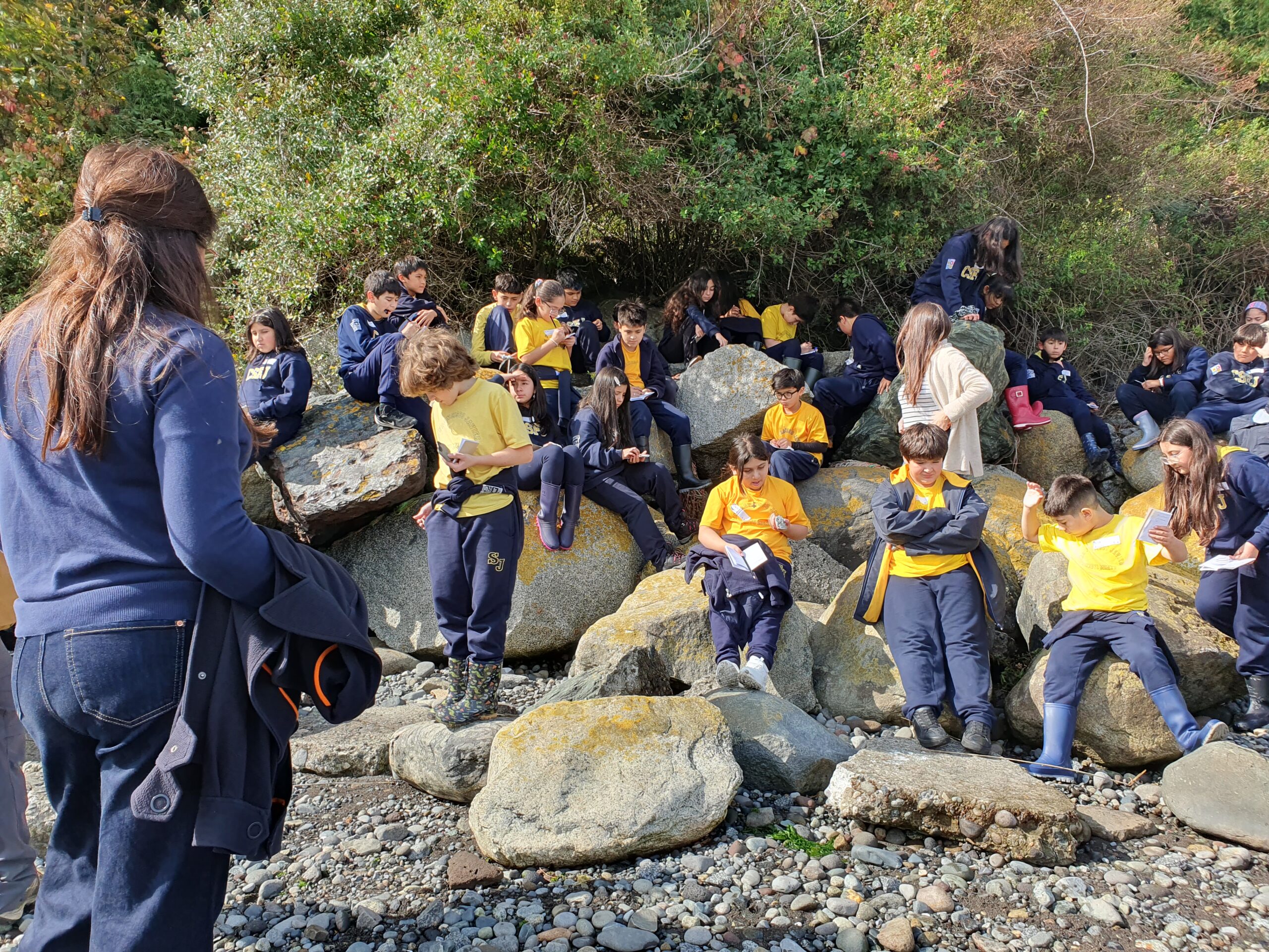 También realizamos tres salidas a Punta Pelluco, donde los estudiantes exploraron la distribución del agua, compararon ecosistemas de agua dulce y salada, y reflexionaron sobre el impacto humano en los ecosistemas. El Bosque Fósil de Alerces nos conectó con la historia profunda del territorio.