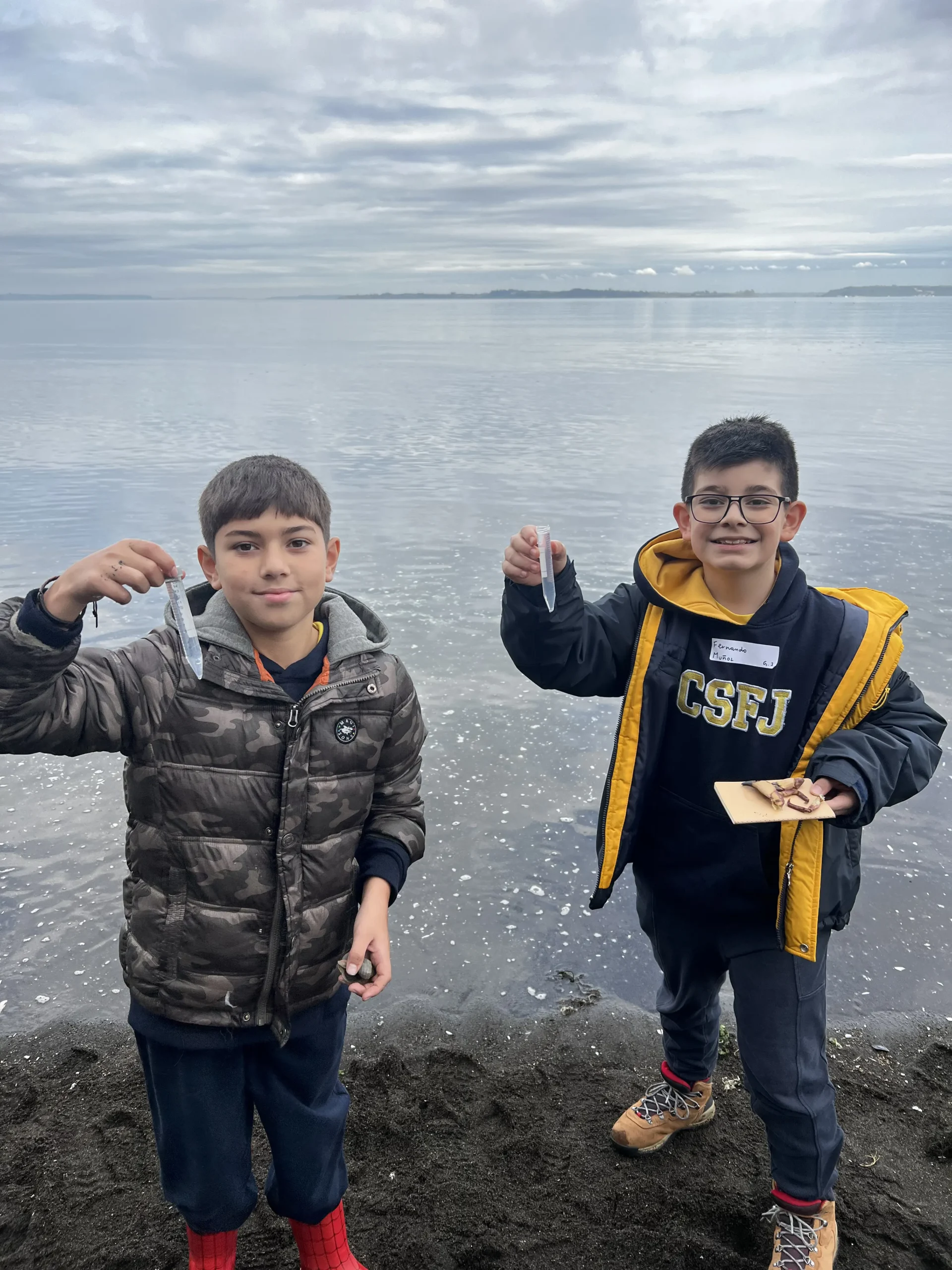 Junto al área de educación realizamos tres salidas pedagógicas con estudiantes de 5° básico del Colegio San Francisco Javier a la playa de Pelluhuin, Puerto Montt. Observamos la vida marina, reflexionamos sobre el ciclo del agua y su importancia para la vida, y reforzamos la conexión de niños y niñas con los ecosistemas acuáticos.